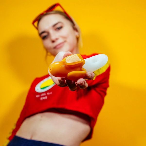 Tijd om gek te doen met deze opvallende glazen pijp! De Bananza Glazen Pijp van Goody Glass is 11,4 cm groot en heeft een suggestieve vorm. Mensen kijken misschien raar, maar who cares? Je hebt niet echt geleefd als je nog nooit hebt genoten van een pijp in de vorm van een gepelde banaan, gevuld met je favoriete wiet. Laat zien dat je nergens om geeft en gaan met die banaan!