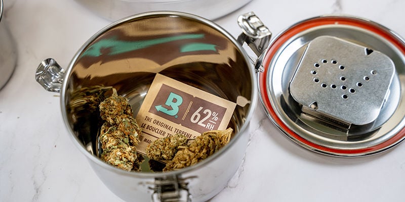 Om het compleet te maken, maakt de CVault gebruik van een tweeledig humidipak, waarmee overtollige vocht uit de lucht wordt gehaald en vervangen wanneer het niveau te laag wordt. Hierdoor kan de CVault een perfecte, relatieve luchtvochtigheid van 62% behouden in de container; de ideale luchtvochtigheid voor het bewaren van de meeste kruiden, inclusief marihuana.